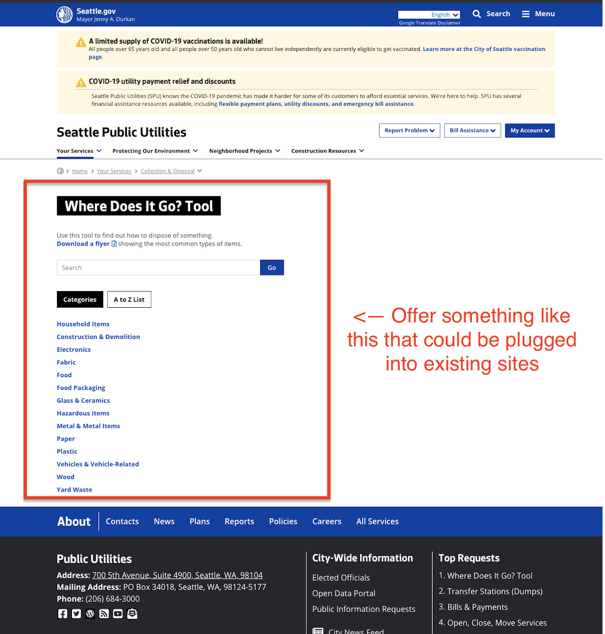 On the ideas front, the latest idea I’m interested in testing is how receptive city agencies would be if I offered them an answer widget that they could just embed into their own existing websites. While it feels much less impressive, I expect it’s much more palatable for prospective users because it’s far less change on their part. But even that might be a tough sell. We’ll see.